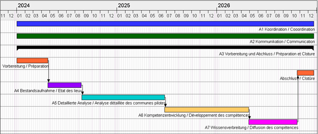 La réalisation du projet est basée sur une coopération associant quatre communes pilotes au sein de l'espace du Rhin Supérieur.
